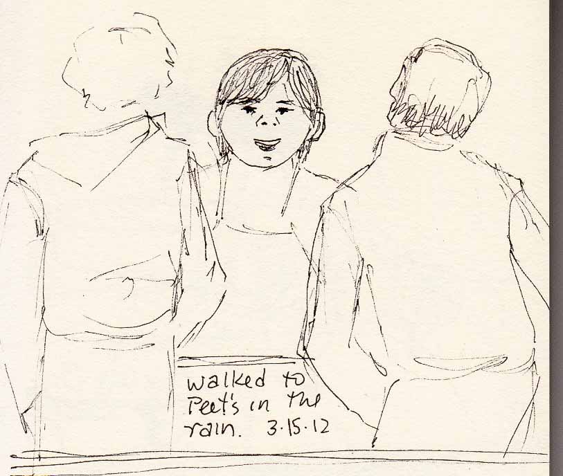 There’s something about this sketch that really says winter in Northern California to me: bundled up, boots on, bare trees out the window, and a sense of quiet.